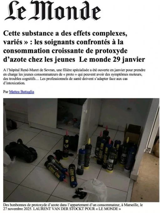 Consommation de protoxyde d’azote : un reportage du Monde met en lumière une problématique de santé publique émergente